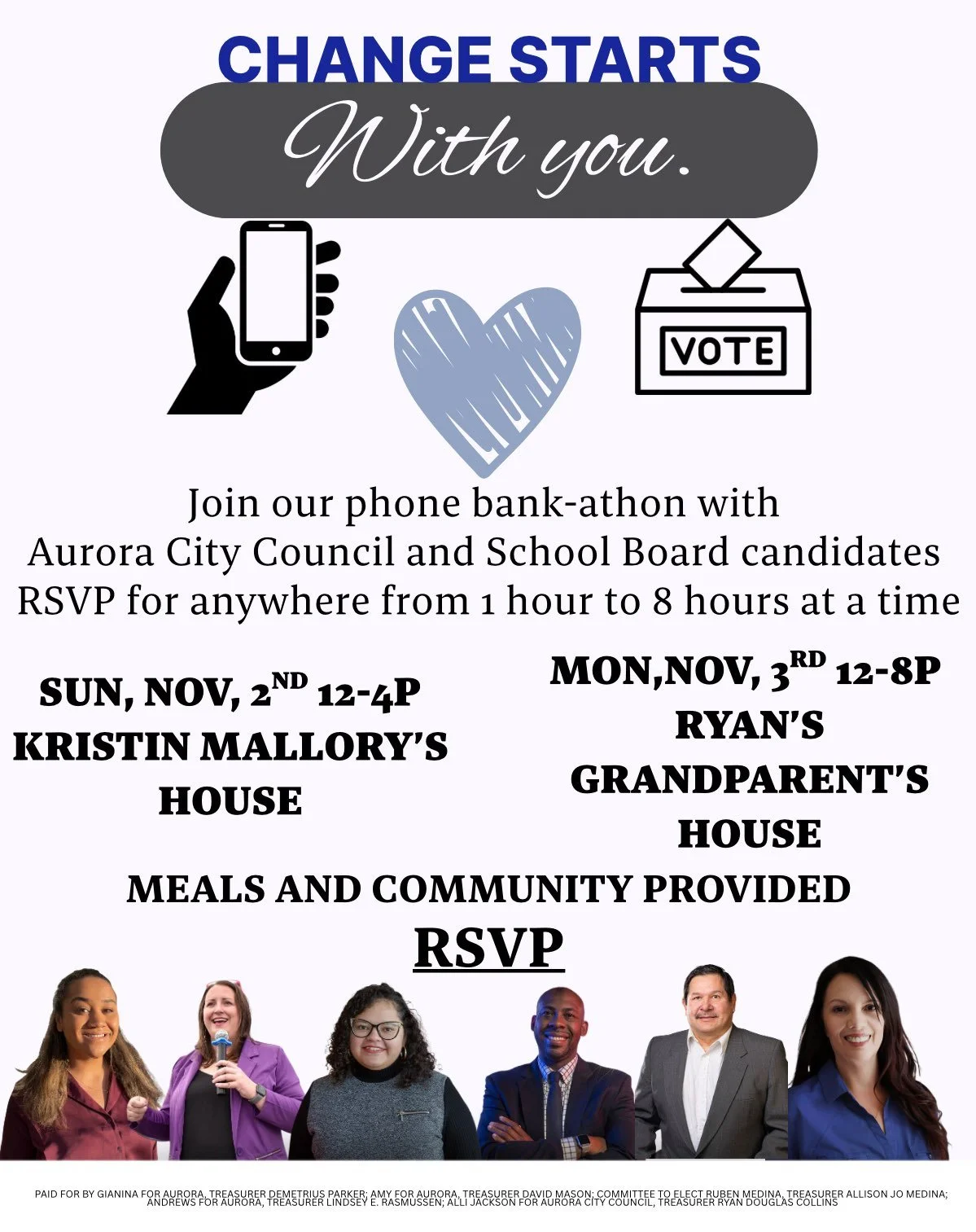 And we need YOU to help us reach voters by knocking doors across Aurora! Check out our current canvassing schedule below - no need to RSVP, just show up with comfy shoes and layers!